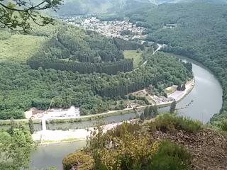 Comme prévu je pars tranquille, objectif 16/17h, Rémi me suis mais dans la 1ère montée je ne le vois plus je ne sais pas si il est devant ou derrière, les jambes vont bien ça c'est une bonne nouvelle, j'avance bien et je reconnais le parcours après un moment j'arrive sur le chemin où j'avais fait une chute en 2017 cette fois je reste prudent et pas de soucis j'arrive au 1er ravito à 20km d+996m en 3h01 pause pipi et plein d'eau puis je repars. Je garde le même rythme les montées passent bien, j'atteins le ravito 2 et la 1ére barrière à 27km d+1327m en 4h32 ce qui me fait 58mn d'avance sur la barrière je refais le plein d'eau et j'en profite pour manger un peu. Je repars en traversant une forge c'est sympa et je sais que j'approche du gros morceau du d+ lol. J'enchaîne les montées et les descentes et tout va bien, les paysages sont sublimes il fait bien chaud donc j'apprécie les passages en sous bois, j'arrive rapide ment au ravito 3 à 32km déjà 5h55 de course et pour le moment tout se passe bien, prochain ravito à 51km soit 19km à parcourir en 4h30 maxi je croise pas mal de coureurs l'occasion de discuter. Vers 13h le rythme a baissé et j'ai faim, comme je suis dans les temps, arrivé en haut d'une côte je décide de m'arrêter pour manger et je suis vite rejoint par un coureur puis d'autres qui passent et s'arrêtent pour faire une petite pause, moi une fois mon sandwich terminé je me remet en route le coup de fatigue est passé une fois restauré, je reprends mon rythme les km défilent rapidement c'est cool en haut d'une côte surprise l'orga a improvisé un ravito juste de l'eau mais elle est la bienvenue car avec la chaleur je bois beaucoup, juste après on enchaîne des superbes montées dont certaines très technique avec des passages de corde et des descentes technique où même des fois on cherche par où passer mais j'approche du prochain ravito j'ai passé la moitié de la course. Je commence à apercevoir des maisons je me dit que ça approche et ça fait 1h que j'ai envie d'un bon coca je croise un pote qui vient d abandonner dommage... Arrivé au ravito en 10h10 j'ai 20mn pour me ravitailler et repartir mais grosse déception car le ravito est quasiment vide il reste de l eau des fruits secs et des carrés de chocolat du coup je refais le plein d'eau cette fois je remplie 4 flasks pour faire juste un passage éclair au ravito du 65km je récupère mon sac d allégement où je récupère mon ravito pour la suite de la course et je repars j ai 5h05 pour parcourir 24km c'est jouable il faut juste ne pas traîner, je repars donc sur un bon rythme car j attaque directe après 500m de plat la plus longue côte de la course et ça grimpe sec lol mais ça va, autant en 2017 j'avais bien galéré et je m'étais arrêté pas mal de fois la nickel en une traite ensuite une belle descente parcourue à une belle allure, je croise des signaleurs qui m'encouragent et je rattaque une nouvelle côte moins raide et je grimpe bien et bam arrivé en haut au moment de relancer et bien plus de jambes, impossible de courir je mange un peu et j'avance en marche rapide entre temps j'apprends que les copains sont derrière et ont abandonné, moi je m'accroche le mental est là, il me reste 20km à parcourir en 4h si j'arrive à recourir ça peut le faire mais pas moyen le temps passe le mental aussi une heure de passée et j'ai fait qu'un peu plus de 4km et le mental lâche plus d'envie de continuer, je continue donc en marchant et je suis rejoint par les serre-fil, je finirai mon aventure avec eux pour rejoindre le ravito a 65km, j y arriverai en 13h58 finalement et en bon état par rapport a 2017, je prends vite la navette et retour sur le site de départ, je retrouve les copains un petit repas qui fait du bien.