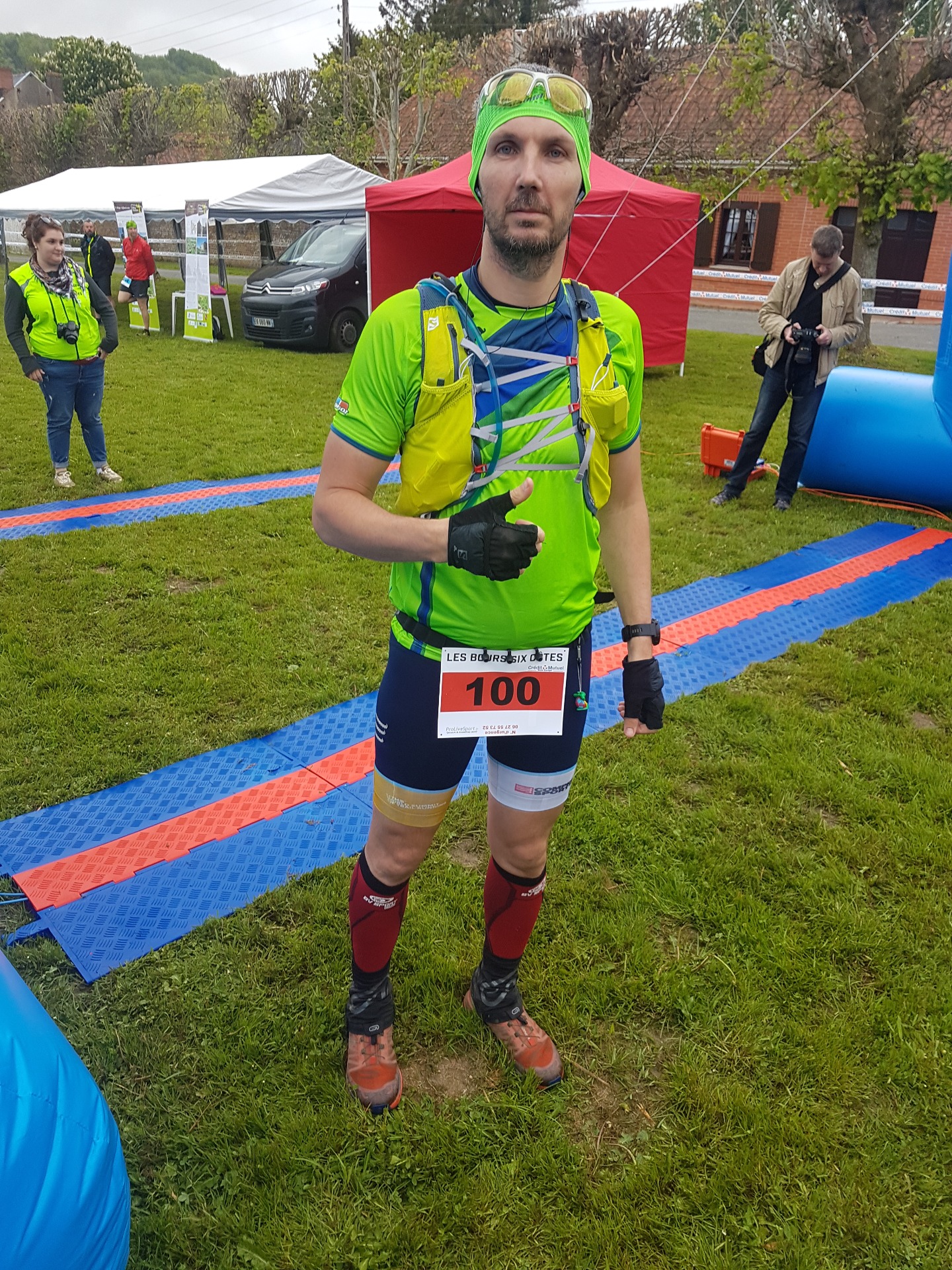 mon trail Les Bours Six Côtes 25km. pas prévu à la base mais bon je me suis laissé tenter pour cette course en terre inconnue lol. levé 7h une flap jack Nutrisens Sport noix de pécan j'adore 😀 je me prépare tenue habituel cette fois je prends la poche à eau et comme alimentation toujours les gommes Stimium et comme d'hab je pars à l'arrache mdr. arrivé sur place, stationnement au kes west puis direction le site de départ pour le retrait de dossard. sur place je retrouve des copains et copines, l'accueil est convivial, cette fois dossard 100. l'attente avant le départ est l'occasion de discuter avec les copains, je revois Hervé. Pour moi se sera un trail en mode sortie longue cool ayant fait les 20km du trail bernard beets. je prends le départ avec Rémi qui part comme une balle lol moi je reste prudent faut le temps que mon vieux diesel chauffe mdr je croise mon pote Anthony avec qui je ferai ma 1ère partie de course l'occasion de pouvoir discuter. au 4eme km je retrouve mon pote rémi entrain de marcher lol on se retrouvera à l'arrivée. le parcours est très sympa et assez roulant, les bénévoles nous encouragent le long du parcours, on arrive au premier ravito un petit coca et c'est reparti, on a une bonne allure on passe les 10km en 59mn, je perds un peu de distance sur anthony mais je garde mon allure je préfère rester prudent, je sent bien dans les jambes les 20km de bully de mardi et les 11km de ma seance avec ma team hier, mais bon ca va allez lol puis je croise une nouvelle compagne de route laetitia du jogging club de lapugnoy on sympathise on terminera la course ensemble. l'occasion de discuter de notre blog et forcément de trail lol du coups les derniers km passent très vite dans la bonne humeur. on traverse un petit ruisseau pour se rafraichir les pieds sous les encouragements d' Eddy une petite montée puis tout chuss vers l'arrivée. yes finisher en 2h31 classé 92/133 33 master1. c'est cool demain repos. désolé si j'ai pas cité tout le monde mais j'en ai croisé tellement lol. avant de partir passage par le stand Tripp Sport pour discuter avec Matthieu et Yoann. encore un super moment de passé, à bientot pour de nouvelle aventure. et pour d'autre photos ou vidéos rendez vous sur notre page facebook dingo traileur et turtle traileuse #stimium #nutrisenssport #datavitae